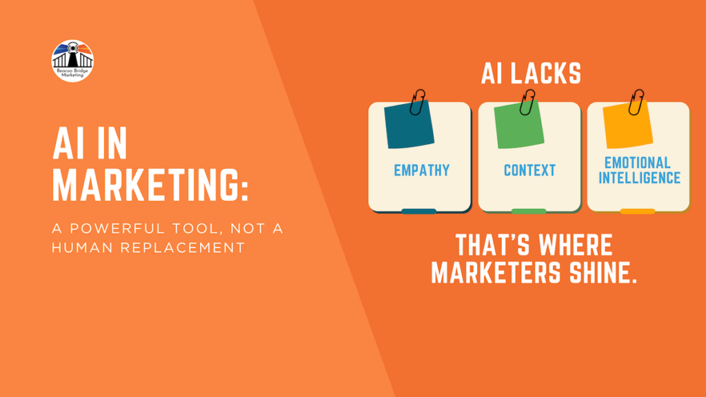 At Beacon Bridge Marketing, we view AI in marketing as a sophisticated power tool—like a high-end saw in the hands of a master carpenter. The tool makes the work faster and more precise, but the carpenter still provides the vision, the craftsmanship, and the final touch.